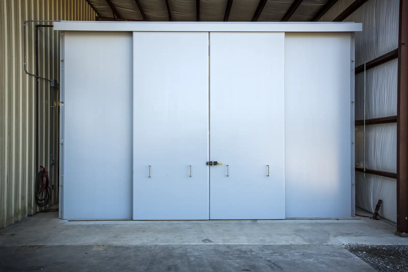 Mourain Construction engineered and provided a state of the art pressure testing booth for Fastorq. The testing booth was engineered and designed to meet the maximum testing pressure for their operations. The pressure testing booth was designed to be relocatable and accommodate a 2-ton work-station crane.