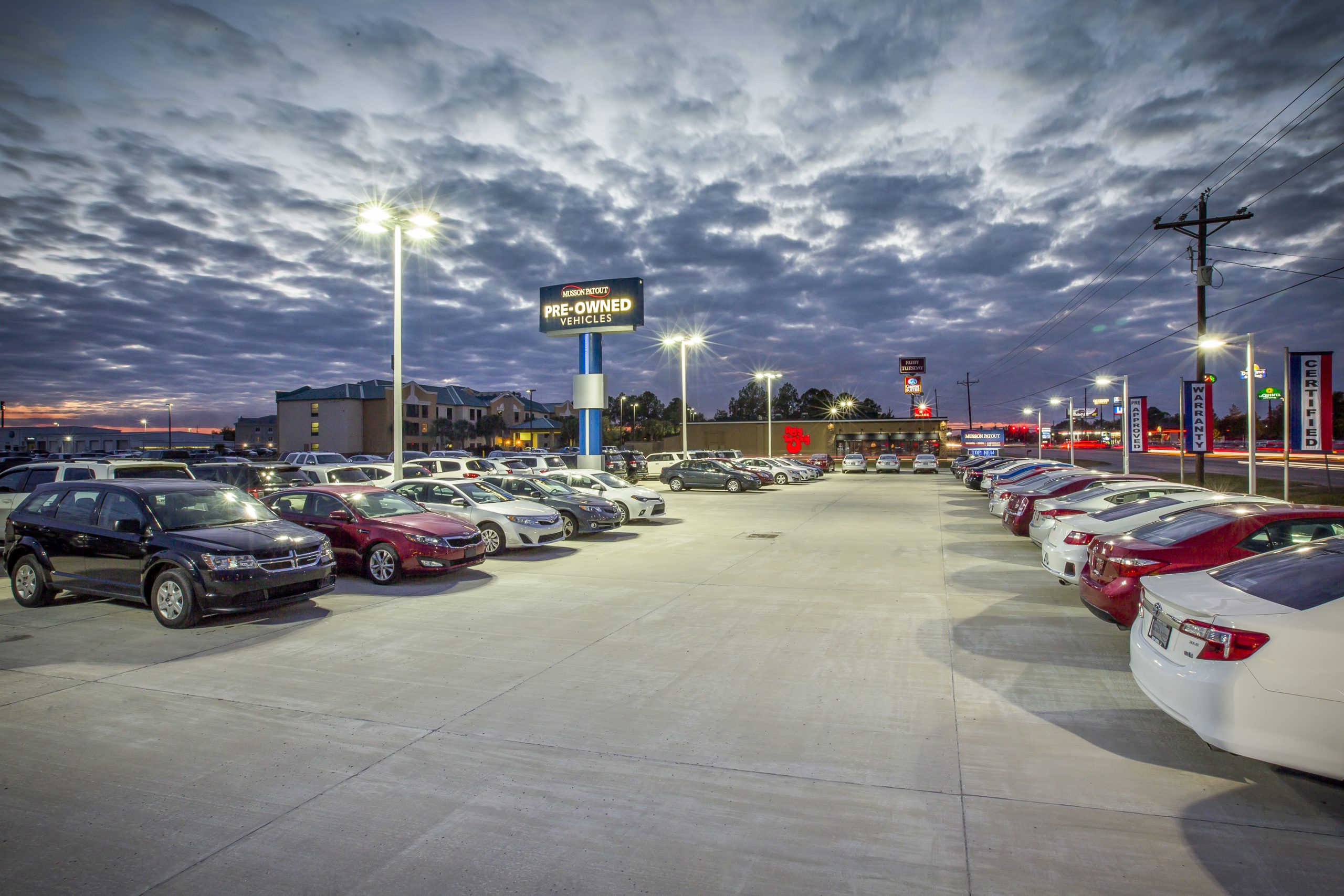 Mourain Construction constructed 30,000 SF of concrete paving with subsurface drainage for Musson-Patout Automotive. The project included the installation of new site lighting and signage.